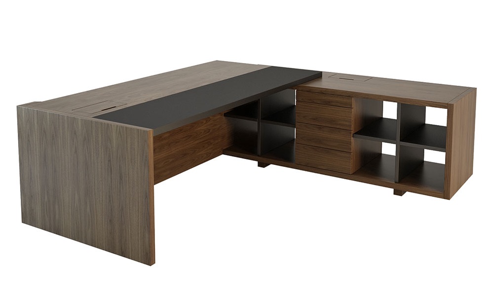 FREEPORT Стол письменный с тумбой Правый, 2340x2265x750. Орех Эспрессо матовый EM1, вставка
