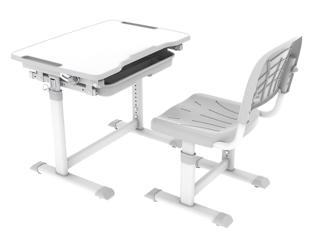 Стол и стул могут быть легко отрегулированы по высоте, что позволяет оптимально адаптировать его под соответствующий рост ребенка.