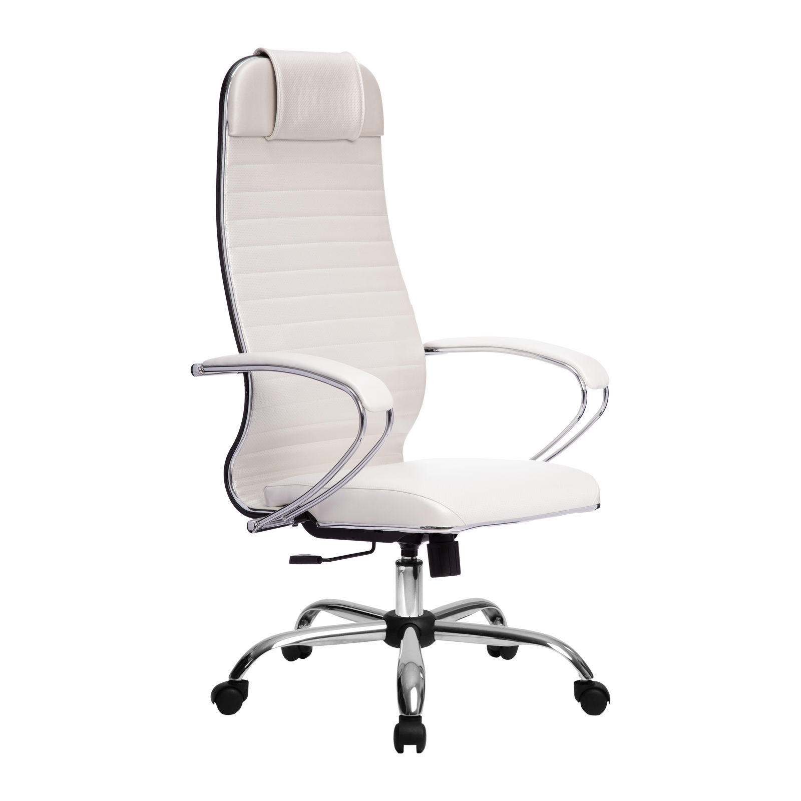 Комфортные классические стальные подлокотники, покрытые зеркальным хромом подлокотники с мягкими накладками из износостойкого материала NewLeather*;