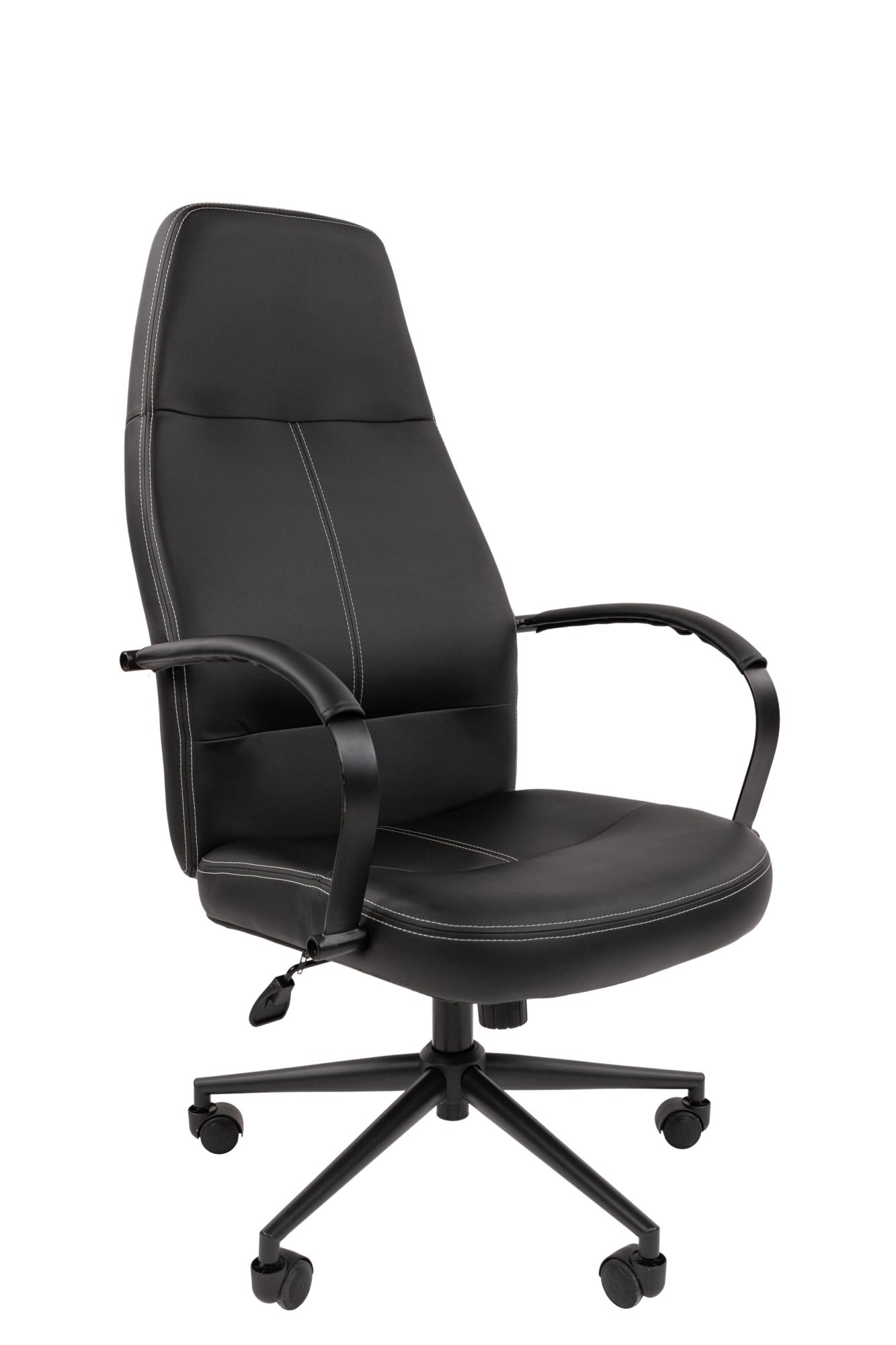 Удобная посадка, обивка из экокожи с контрастной строчкой в сочетании с черной металлической крестовиной и подлокотниками в тон придаст деловому пространству акцент сдержанной роскоши.