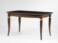 Лицевые поверхности стола отделаны современными лакокрасочными материалами производства Италии, покрыты специальным лаком, допускающим увлажненную уборку пыли со стола. За счет дополнительной вставки 43 см, и благодаря механизму раскладки, изделие достигает максимальной длины в 183 см , стол в разложенном виде позволяет разместить до 8 неожиданных гостей. искусства. Стол на четырех опорах, что придает легкость и изящество конструкции стола.