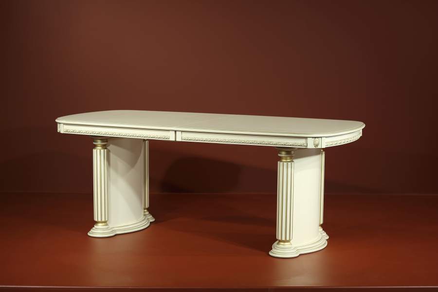 Лицевые поверхности стола отделаны современными лакокрасочными материалами производства Италии, покрыты специальным лаком, допускающим увлажненную уборку пыли со стола. За счет дополнительной вставки 50 см, которая хранится внутри стола , стол в разложенном виде позволяет разместить не менее 10 гостей.