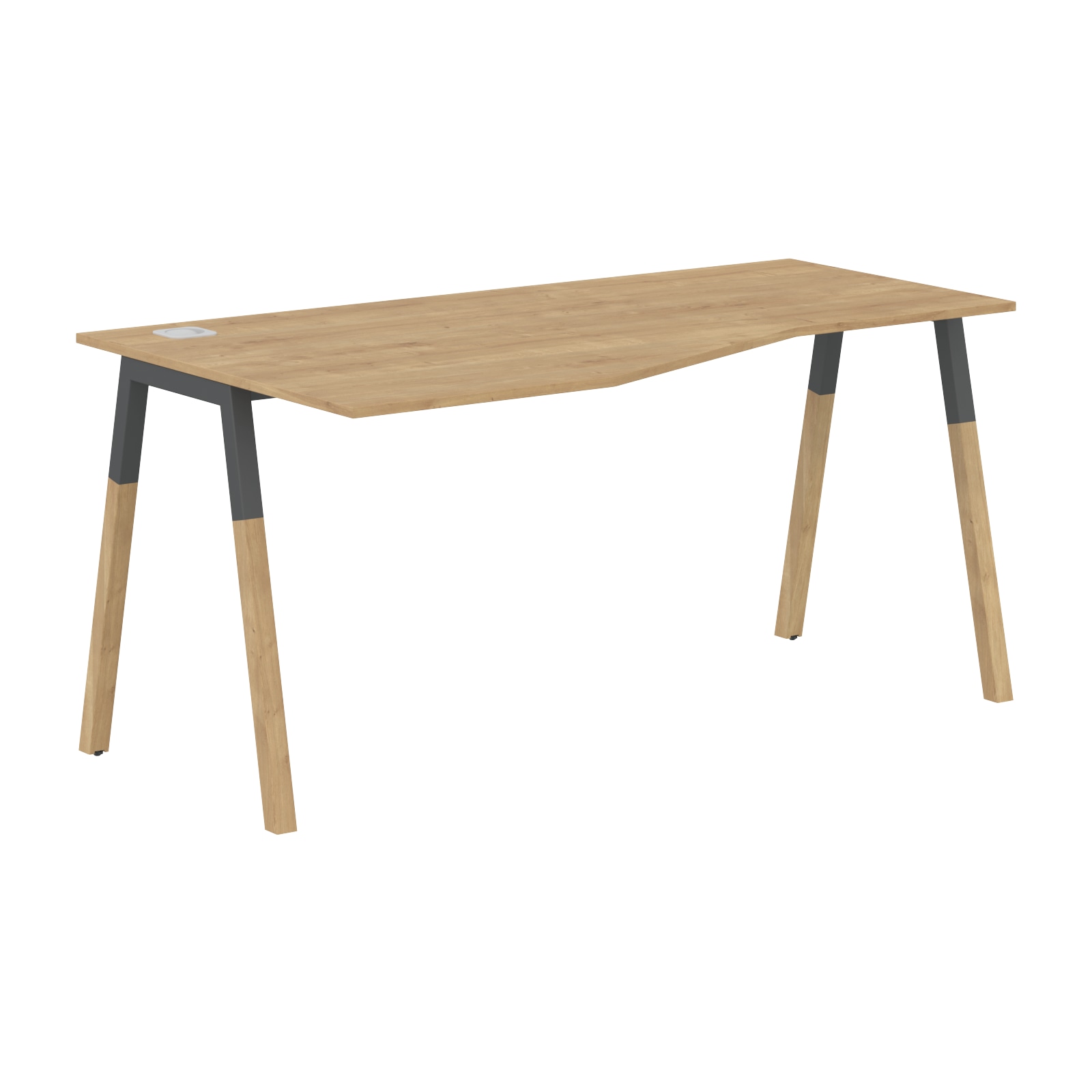 Комбинированные дизайнерские опоры А-образной формы. Верхняя часть прочный металлокаркас в цвете черный графит с двумя траверсами, а нижние части – натуральное дерево, массив бука. Натуральное дерево обработано маслом-воском, что подчеркивает текстуру древесины и создаёт очень прочную, твердую, износоустойчивую, антистатическую, водо- и грязеотталкивающую поверхность.