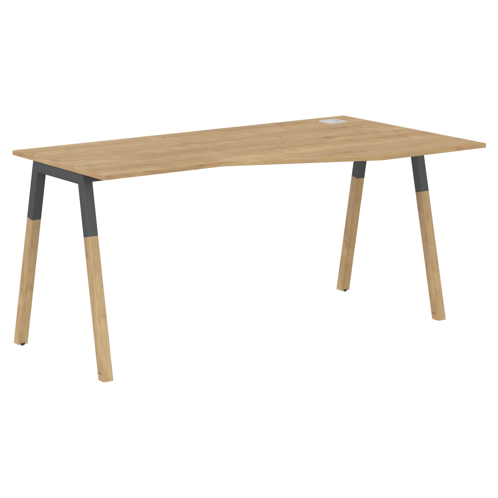 Комбинированные дизайнерские опоры А-образной формы. Верхняя часть прочный металлокаркас в цвете антрацит с двумя траверсами, а нижние части – натуральное дерево, массив бука. Натуральное дерево обработано маслом-воском, что подчеркивает текстуру древесины и создаёт очень прочную, твердую, износоустойчивую, антистатическую, водо- и грязеотталкивающую поверхность.