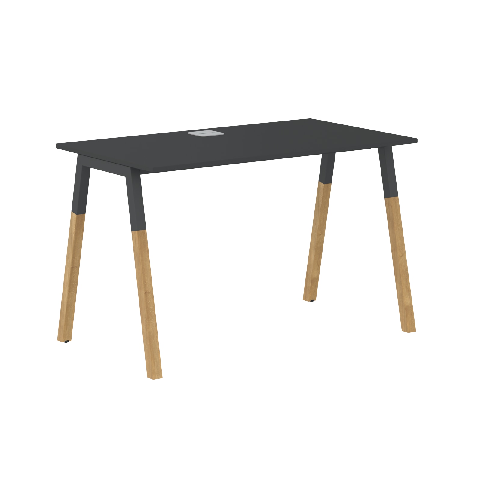 Комбинированные дизайнерские опоры А-образной формы. Верхняя часть прочный металлокаркас с двумя траверсами, а нижние части – натуральное дерево, массив бука. Натуральное дерево обработано маслом-воском, что подчеркивает текстуру древесины и создаёт очень прочную, твердую, износоустойчивую, антистатическую, водо- и грязеотталкивающую поверхность.
