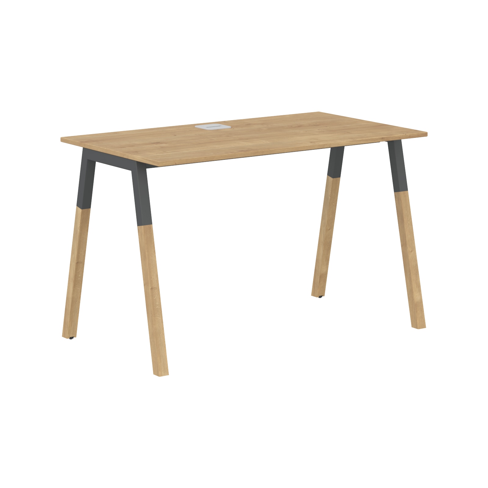 Комбинированные дизайнерские опоры А-образной формы. Верхняя часть прочный металлокаркас с двумя траверсами, а нижние части – натуральное дерево, массив бука. Натуральное дерево обработано маслом-воском, что подчеркивает текстуру древесины и создаёт очень прочную, твердую, износоустойчивую, антистатическую, водо- и грязеотталкивающую поверхность.