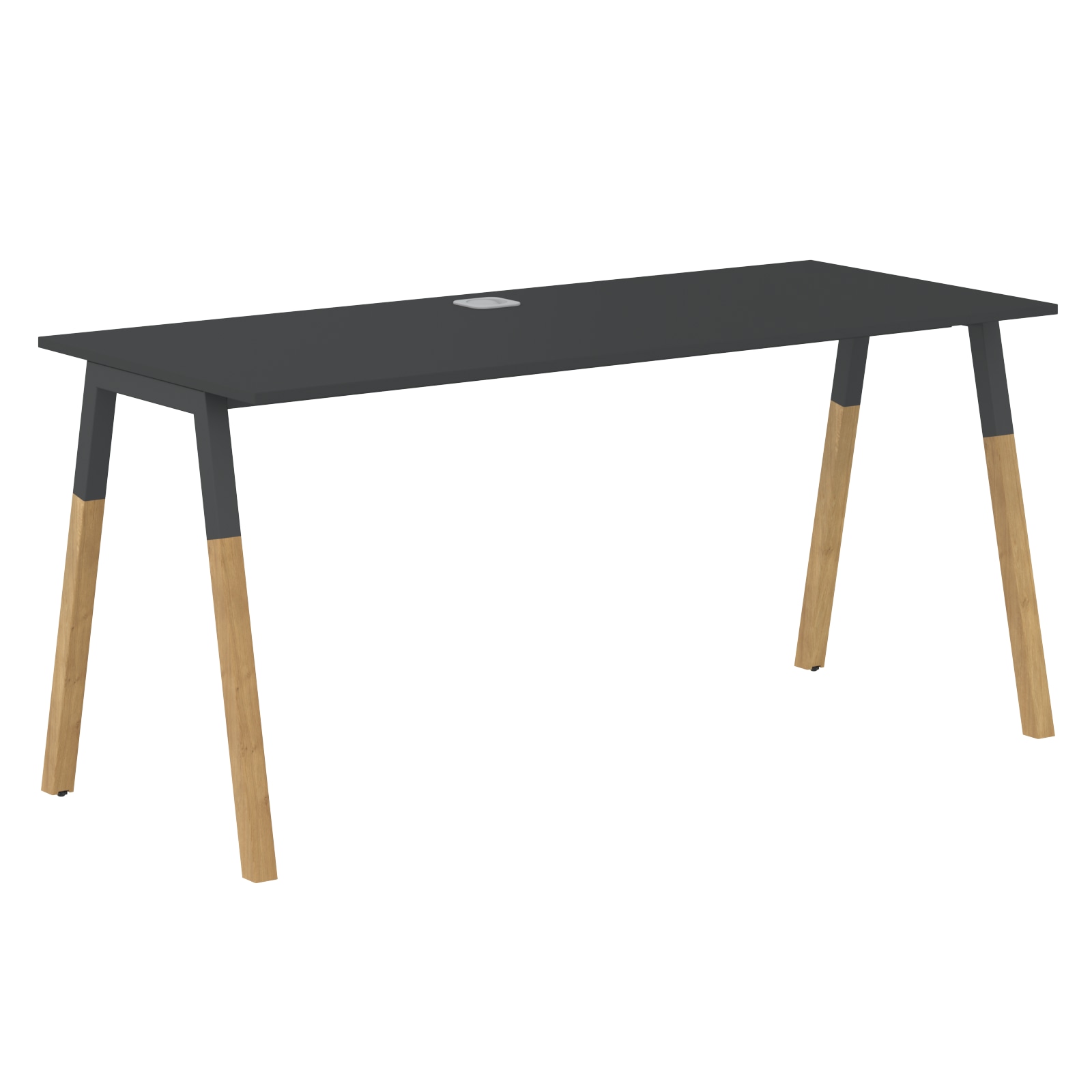 Комбинированные дизайнерские опоры А-образной формы. Верхняя часть прочный металлокаркас в цвете Антрацит с двумя траверсами, а нижние части – натуральное дерево, массив бука. Натуральное дерево обработано маслом-воском, что подчеркивает текстуру древесины и создаёт очень прочную, твердую, износоустойчивую, антистатическую, водо- и грязеотталкивающую поверхность.