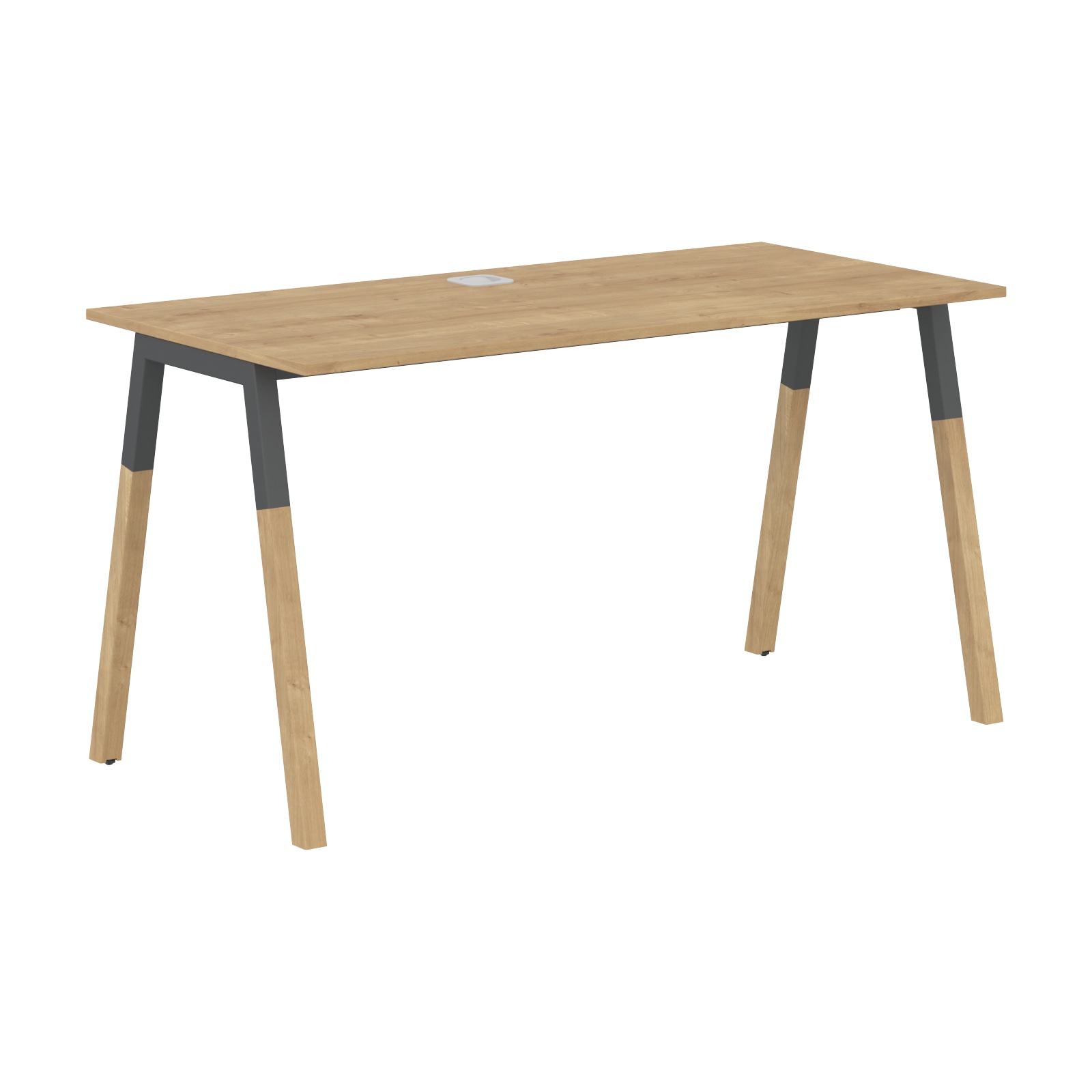 Комбинированные дизайнерские опоры А-образной формы. Верхняя часть прочный металлокаркас в цвете Антрацит с двумя траверсами, а нижние части – натуральное дерево, массив бука. Натуральное дерево обработано маслом-воском, что подчеркивает текстуру древесины и создаёт очень прочную, твердую, износоустойчивую, антистатическую, водо- и грязеотталкивающую поверхность.