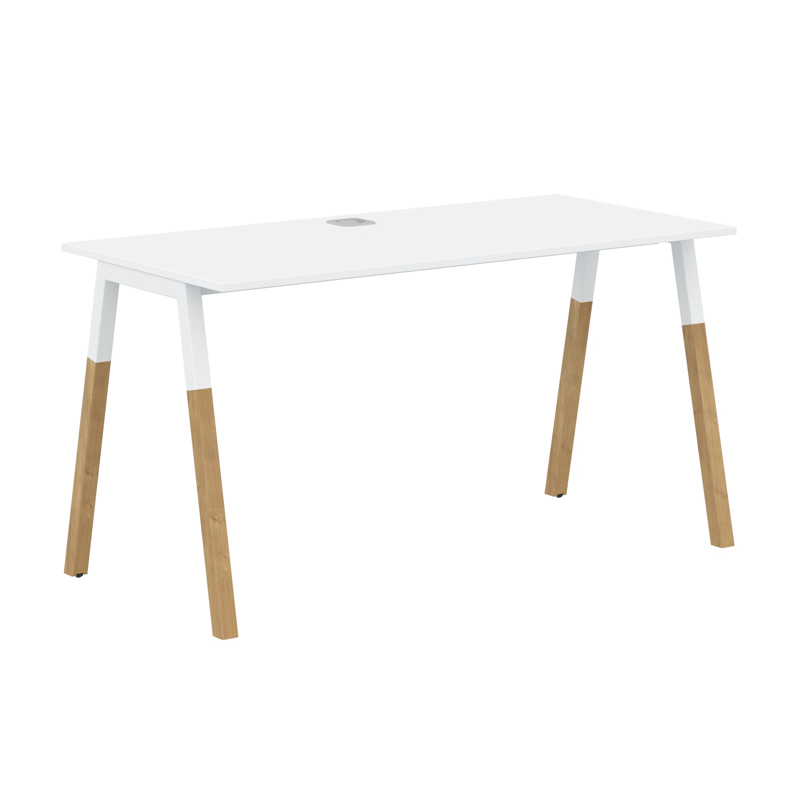 Столешница выполнена из ЛДСП в белом цвете. По центру столешницы заглушка для кабель-каналов.