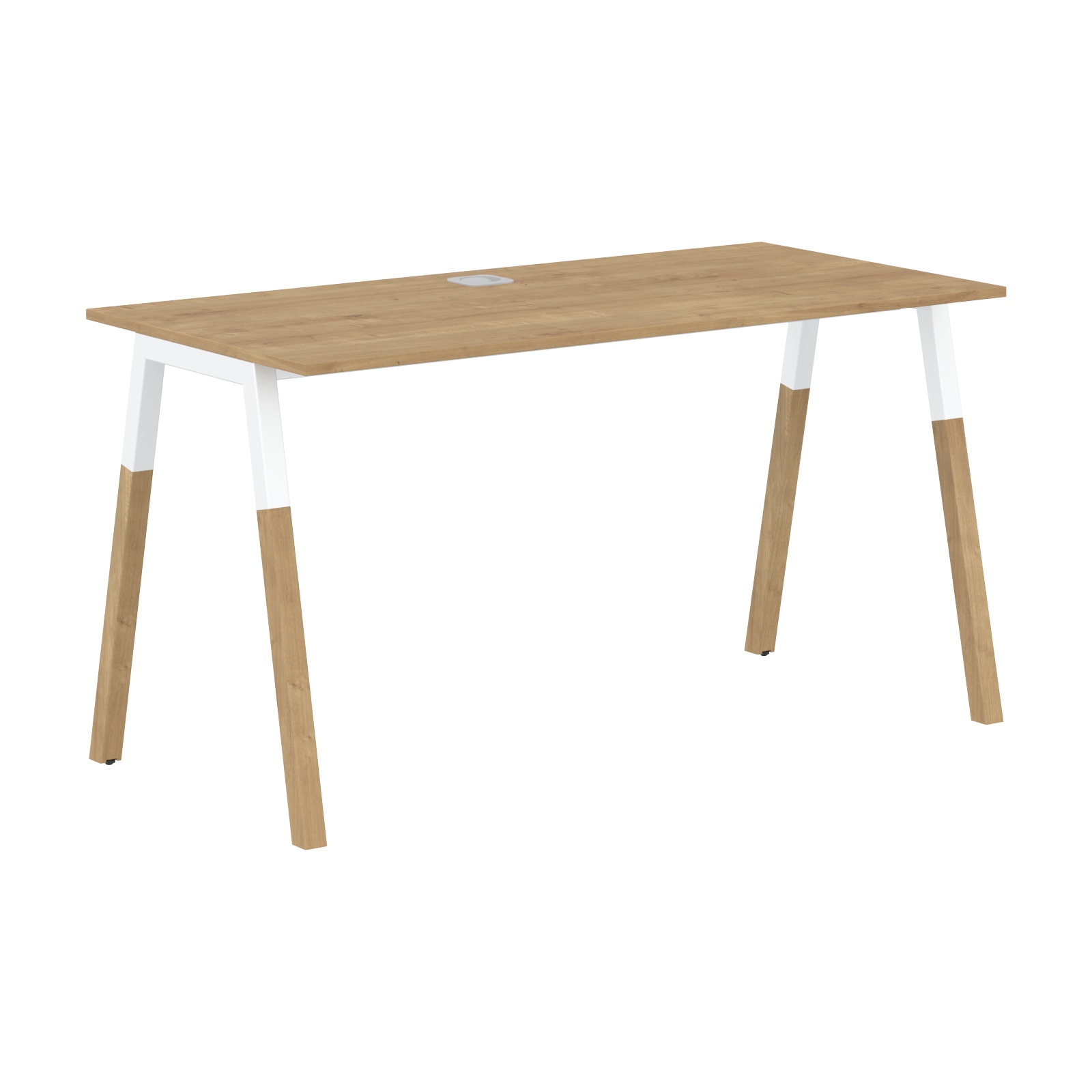 Столешница выполнена из ЛДСП в цвете дуб гамильтон. По центру столешницы заглушка для кабель-каналов.
