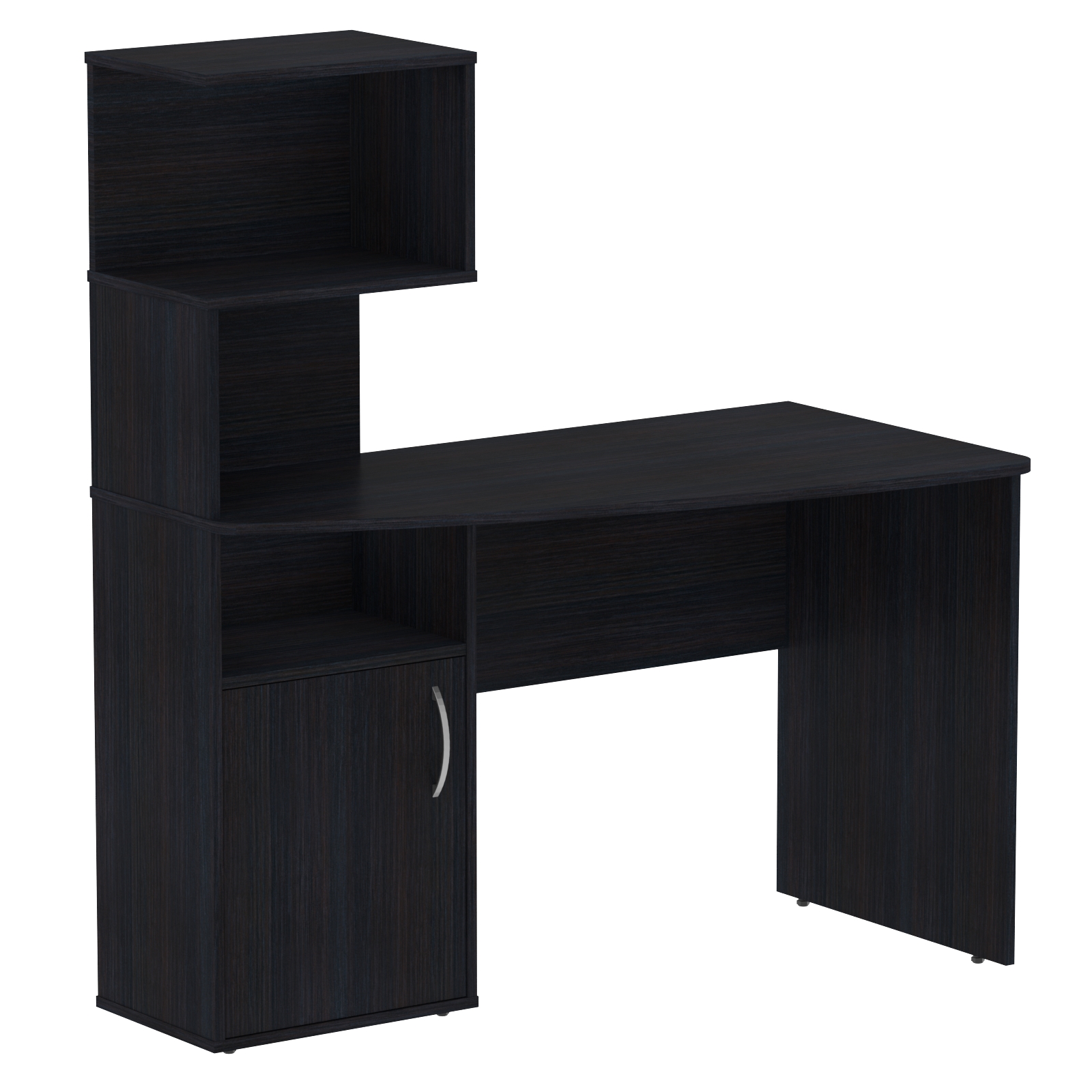 Рабочий стол выполнен полностью из ЛДСП т. 16мм. Угол с левой стороны. Противоударная кромка ПВХ защищает торцы письменного стола от повреждений. А регулируемые по высоте опоры обеспечивают столу устойчивость на неровном полу.
