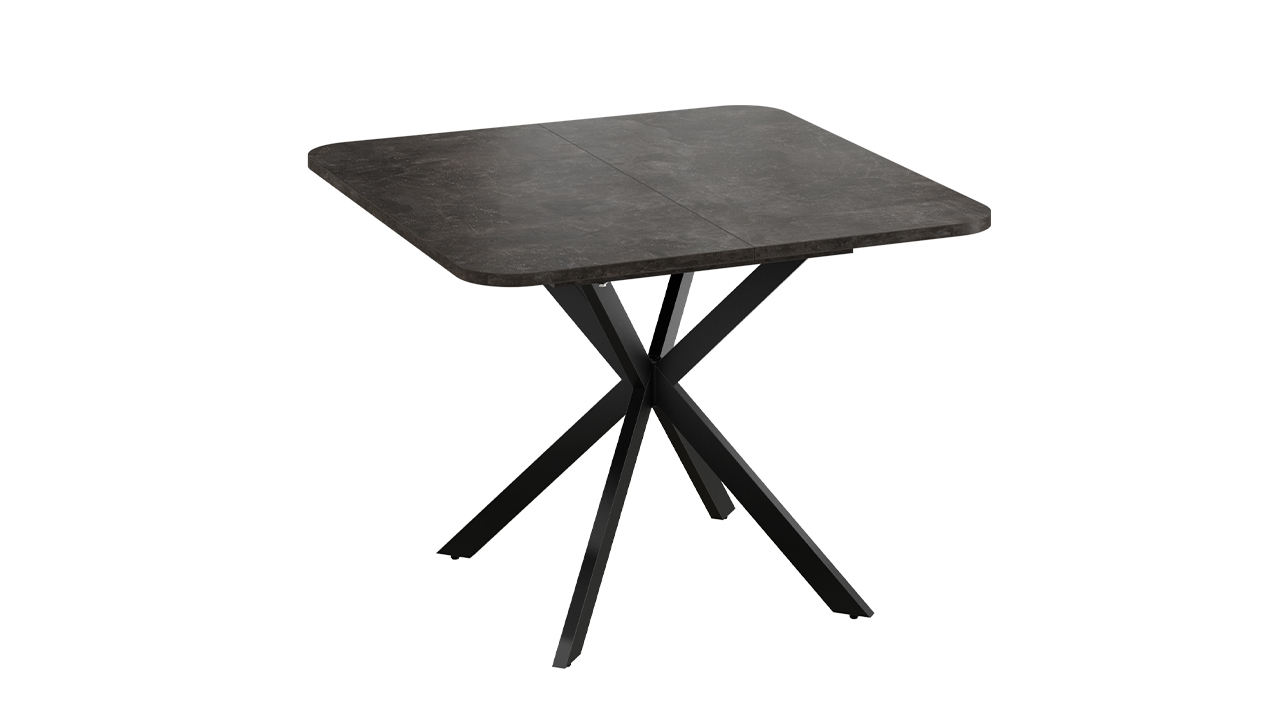 Стильный дизайн. Квадратный обеденный стол на перекрещенных ножках смотрится стильно, лаконично и ненавязчиво в любом интерьере. Столешница выполнена из ЛДСП 22 мм. Яркая особенность — оригинальная форма столешницы и опоры из металла, которые смотрятся привлекательно и современно. Ножки окрашены порошковой краской в цвета «Белый муар» и «Черный муар».