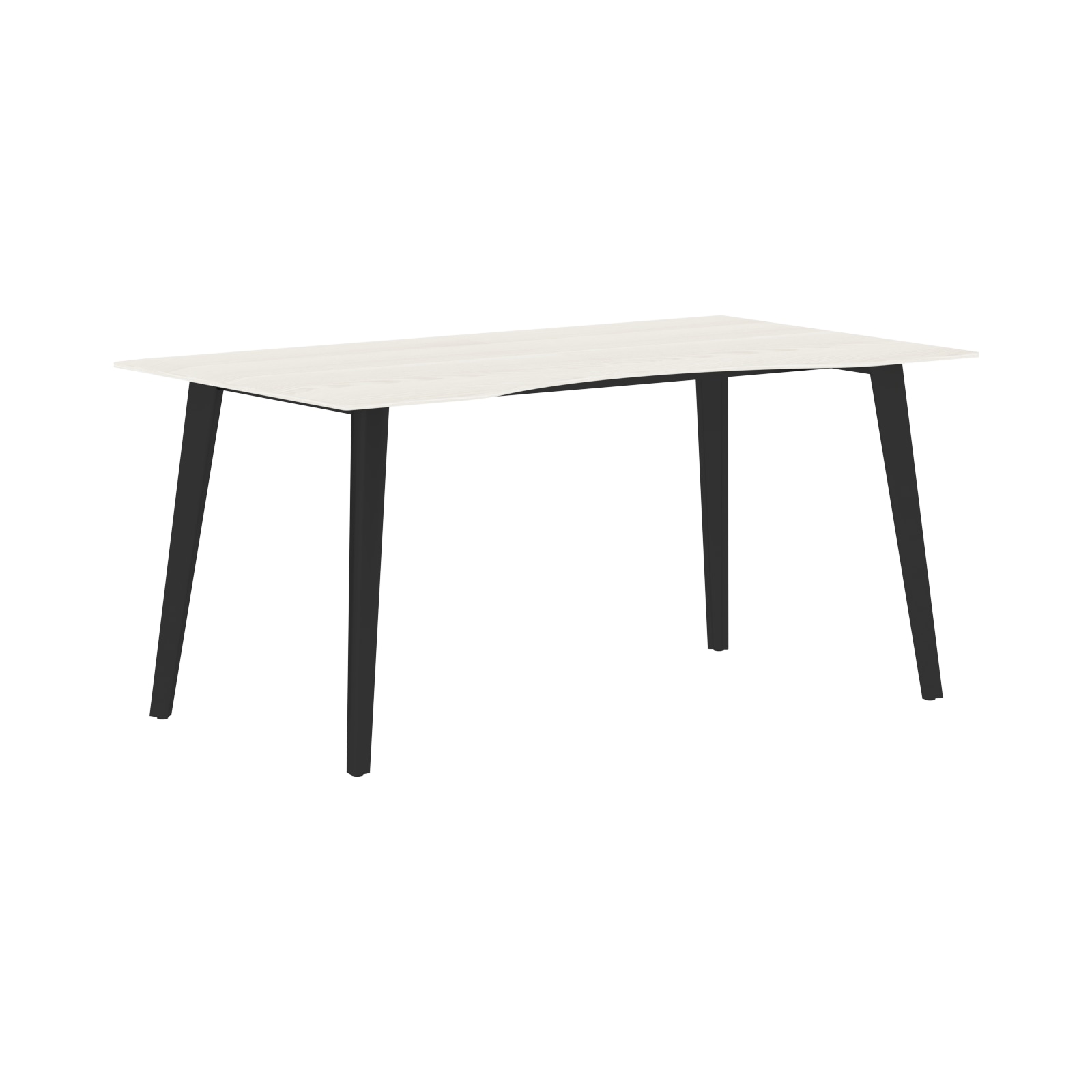 Столешница эргономичная, выполнена из одностороннего МДФ толщиной 19 мм в пленке ПВХ с фрезеровкой по периметру, цвет – ясень белый, размеры – 1600х900 мм. Офисный стол комплектуется металлическими опорами треугольно-конической формы и траверсами рамочного соединения, цвет опор – антрацит.