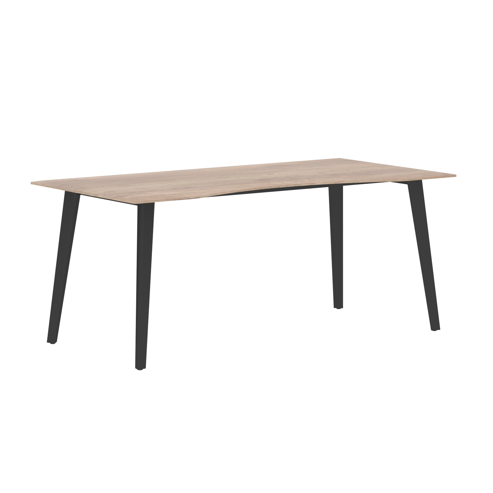 Столешница эргономичная, выполнена из одностороннего МДФ толщиной 19 мм в пленке ПВХ с фрезеровкой по периметру, цвет – дуб каньон, размеры – 1800х900 мм. Офисный стол комплектуется металлическими опорами треугольно-конической формы и траверсами рамочного соединения, цвет опор – антрацит.