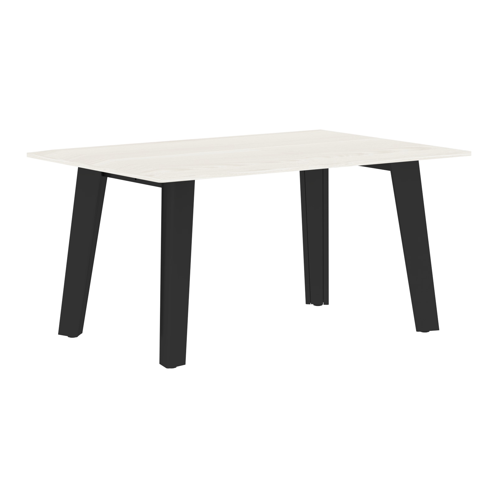 Столешница выполнена из одностороннего МДФ толщиной 19 мм в пленке ПВХ с фрезеровкой по периметру, цвет – ясень белый, размеры – 900х600 мм. Комплектуется металлическими опорами треугольно-конической формы и траверсами рамочного соединения, цвет опор – антрацит.