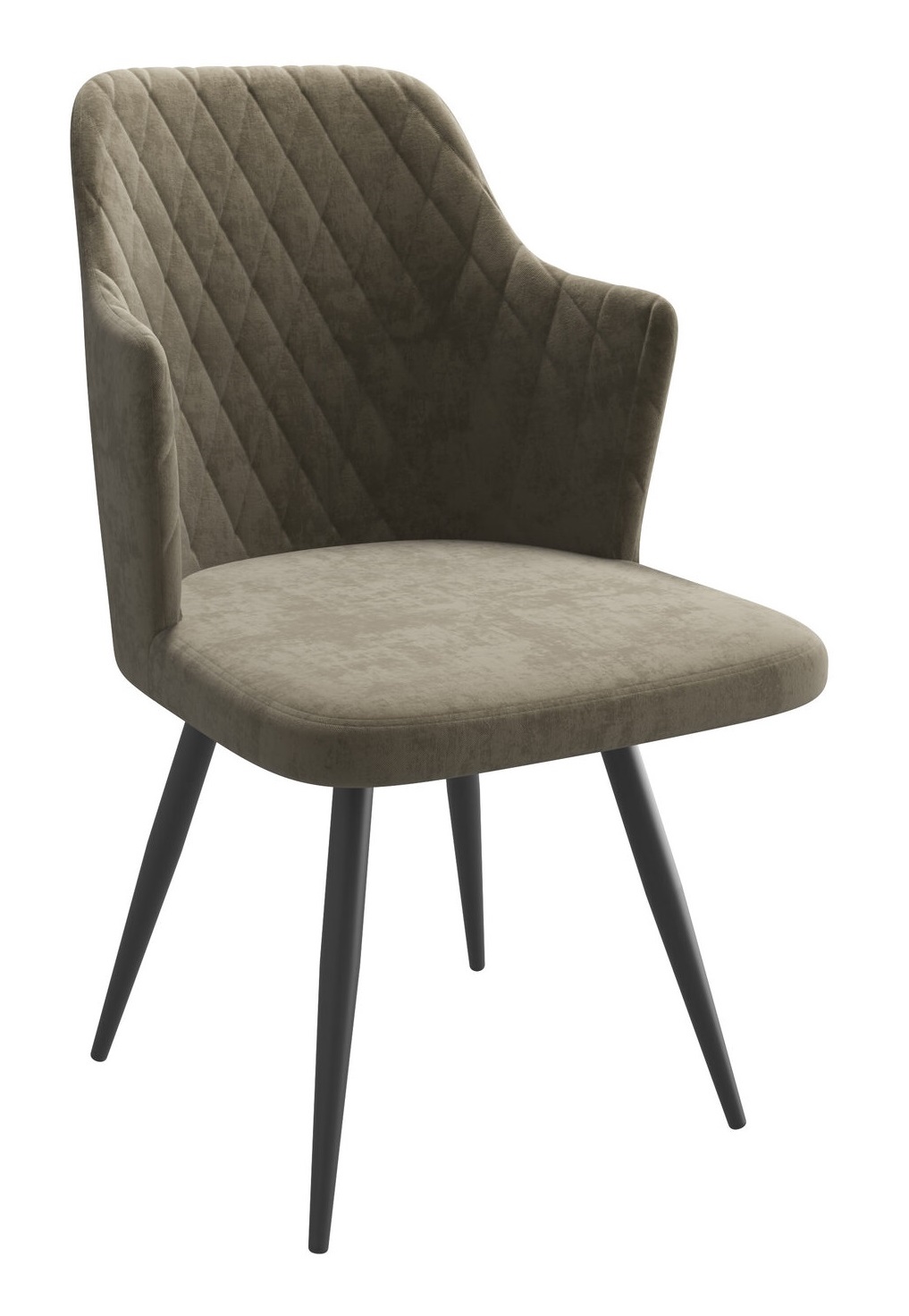 Сидение и спинка стула мягкие, обитые бархатистой тканью с декоративной прострочкой и кантом.
