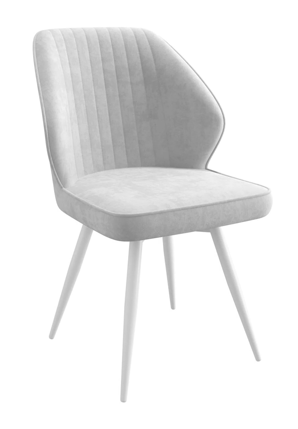 Круглые подсадные ножки изготовлены из стали, имеют белое порошковое покрытие с антикоррозийными свойствами. Серый мебельный велюр с высокой плотностью и износостойкостью приятен на ощупь, не пачкается.