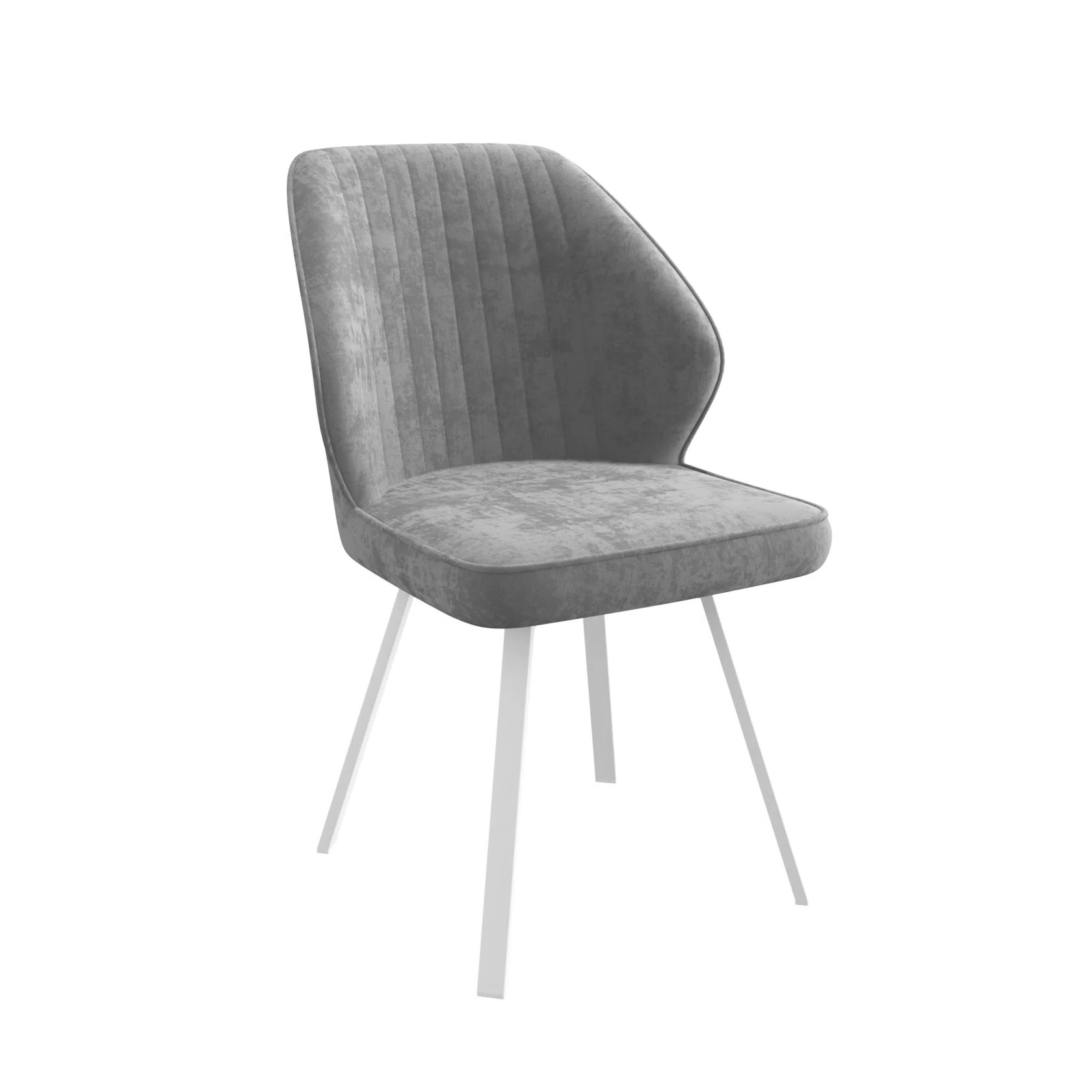 Круглые подсадные ножки изготовлены из стали, имеют белое порошковое покрытие с антикоррозийными свойствами. Серый мебельный велюр с высокой плотностью и износостойкостью приятен на ощупь, не пачкается.
