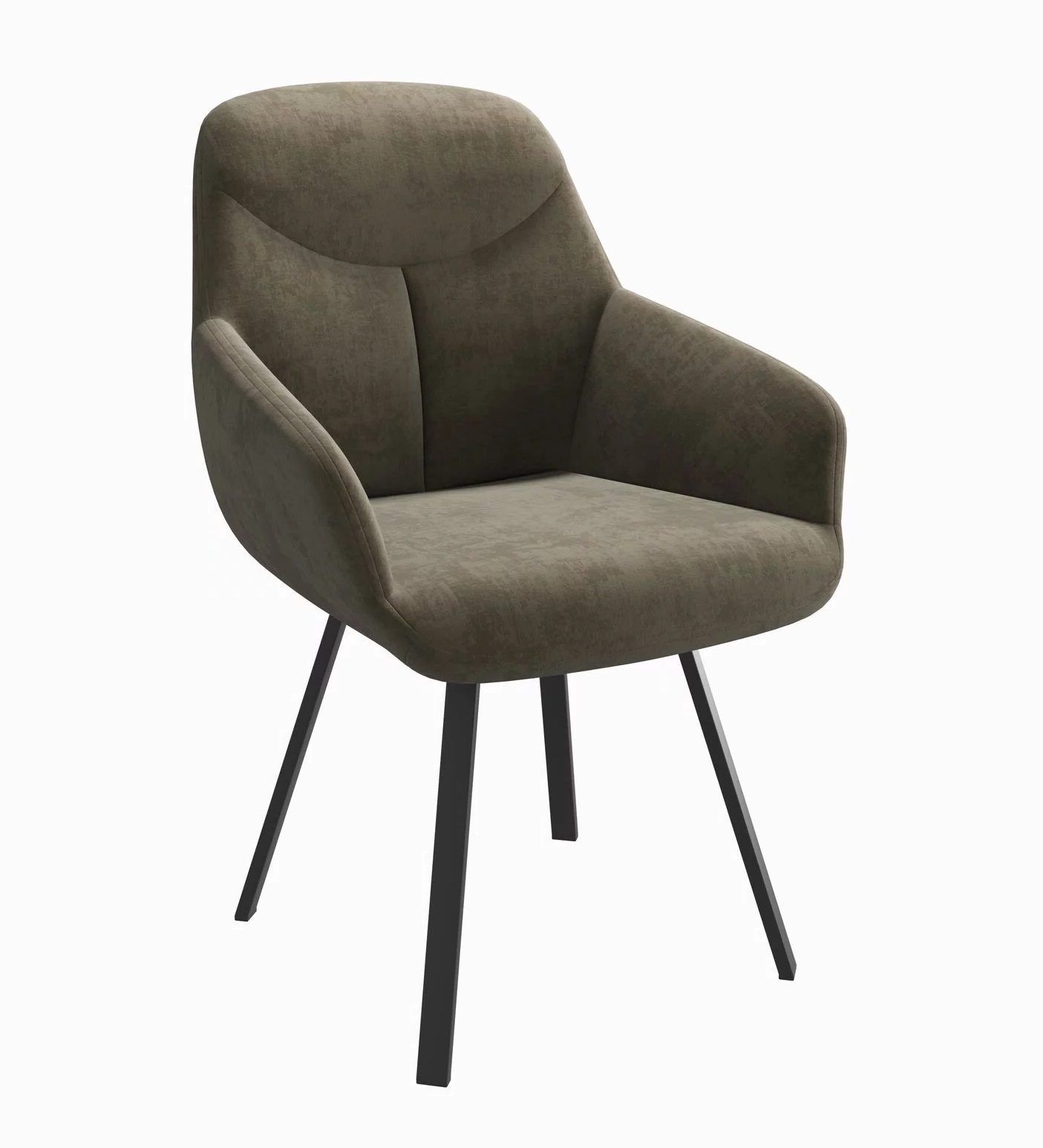 Матовые черные ножки из стали не повреждают пол благодаря пластиковым подпятникам. Обивка в цвете латте из мебельного велюра не изнашивается, не боится солнечных лучей, влаги и когтей домашних животных.