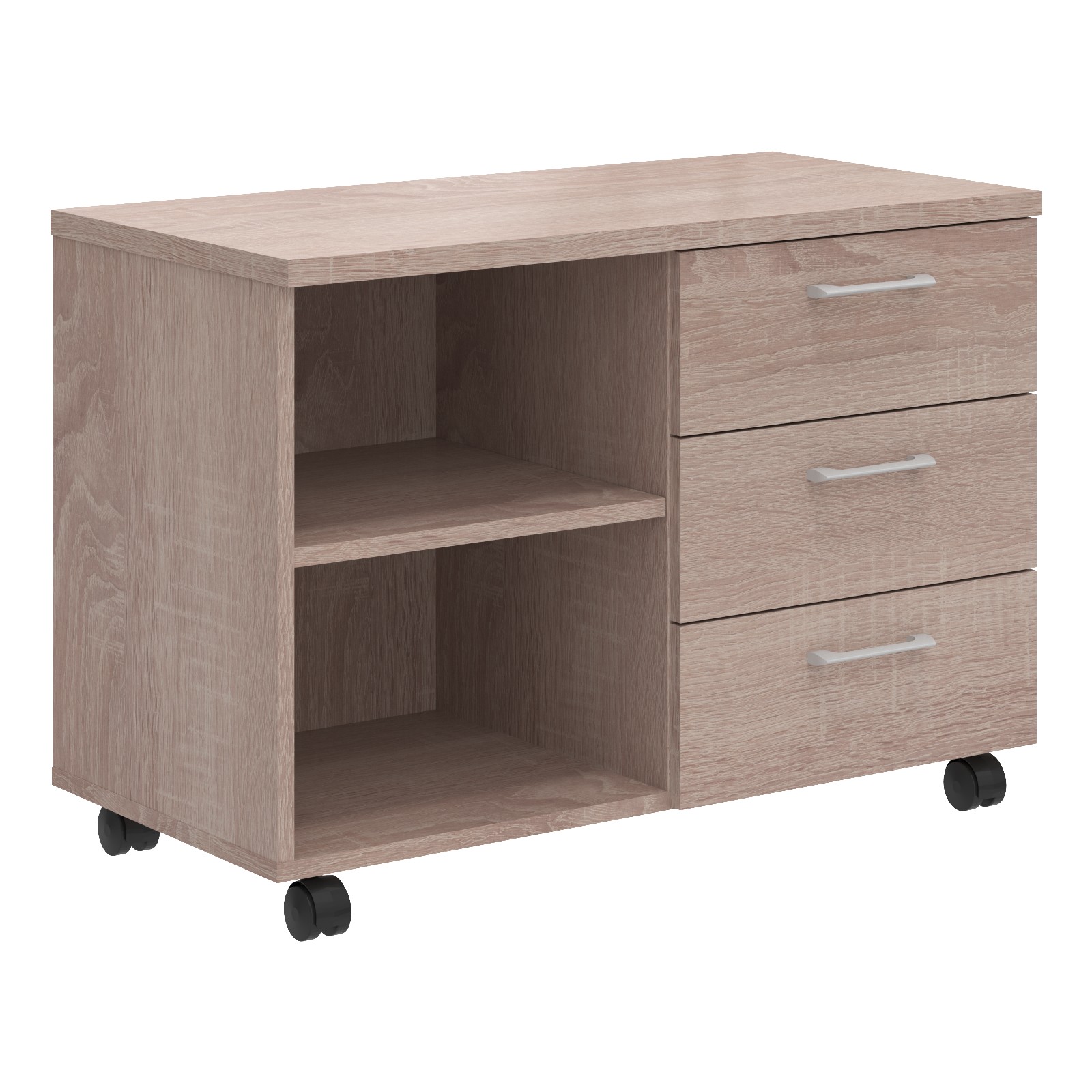 Кроме того, тумба на колесах очень практична: высококачественное ламинированное покрытие устойчиво к повреждениям и легко очищается от любых видов бытовых загрязнений. Тумбочка изготавливается в 6 актуальных цветах: легно темный, дуб сонома, бук тиара, сосна эдмонт, белый, дуб юкон.